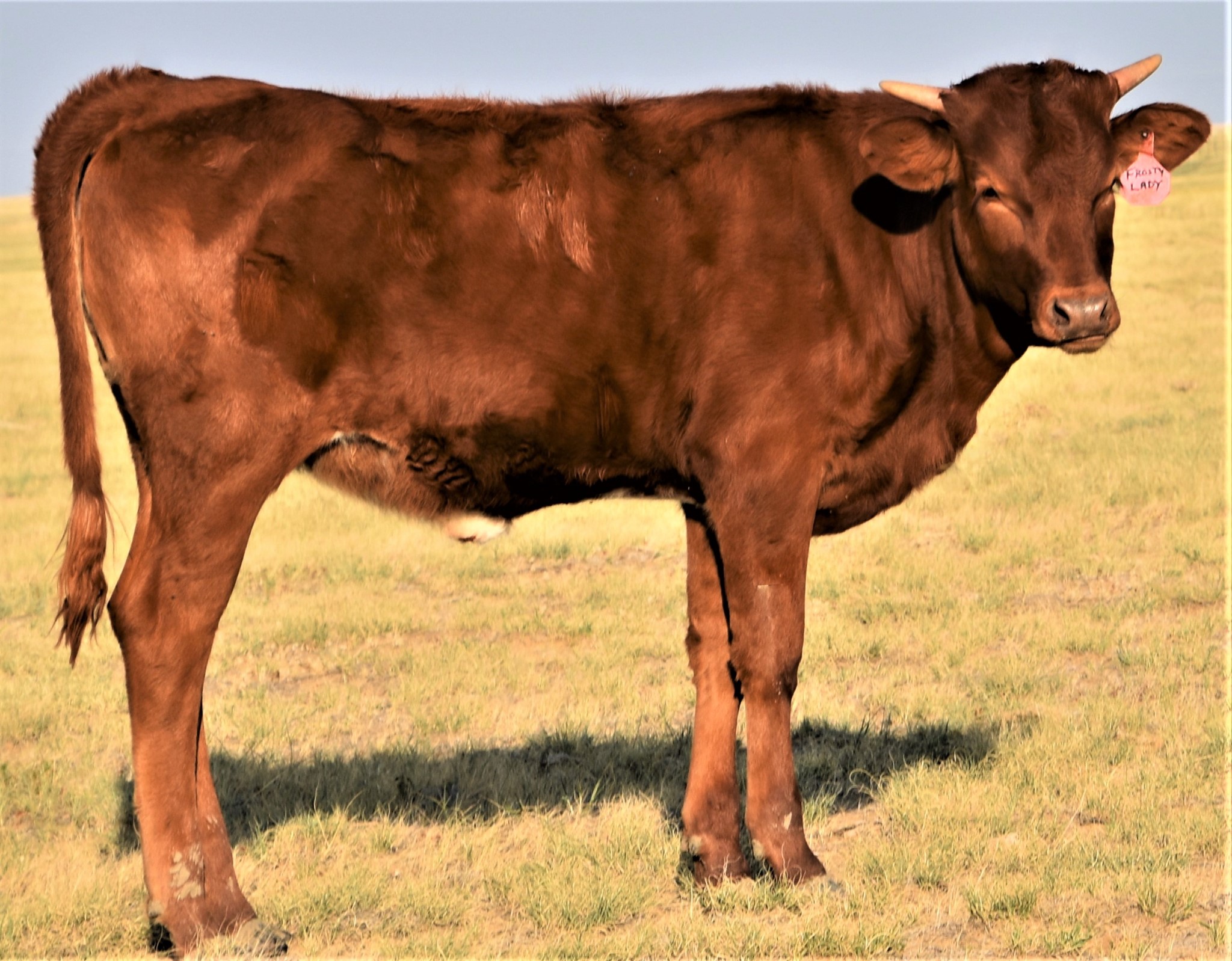 A very balanced and feminine heifer that is growing lots of horn and has the potential to be a very long horned cow as her sire has won eight championships for horn a the HORN SHOW case