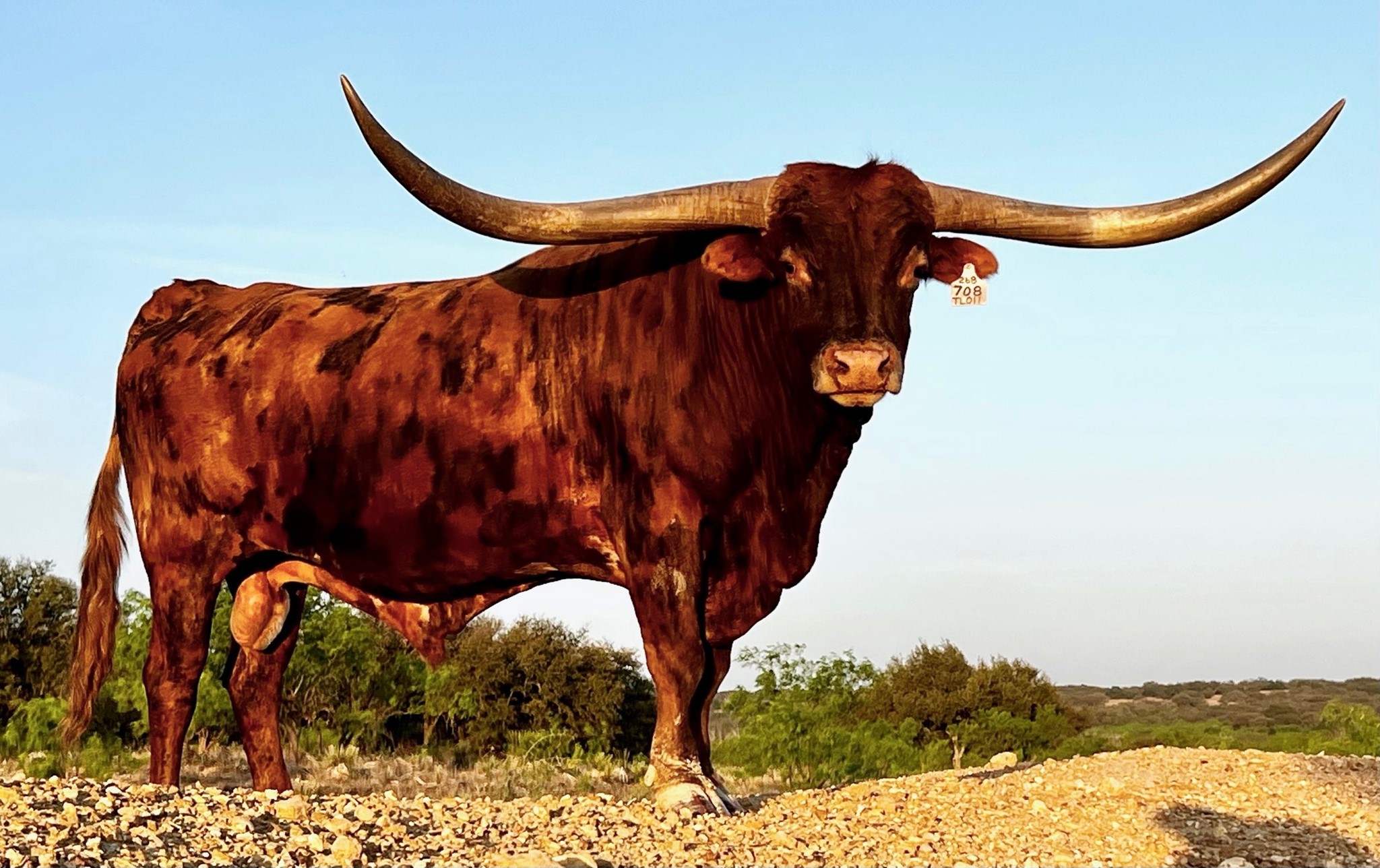 2017, 2018, 2019 and 2020 TLBAA HORN SHOWCASE TIP TO TIP CHAMPION. 2018 BULL ALLEY CHAMPION. The BEST DECISION we ever made in our time in the Longhorn business... A fact. This bull is a PRODUCER. Conventional and 5.0 heifer sexed semen available. Stored at Champion Genetics - Canton, TX.