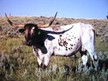 Saddlehorn is a very flashy bull with extremely flat lean back horn. 86 1/4 on 6-16-17. Tested by University of California,Davis Laboratory to be Homozygous Black. All his calves will be from the black family, he cannot produce red. Is a consistent producer of blue and black and white paint calves. Now AI Certified. Semen for sale at 75.00 per straw.
